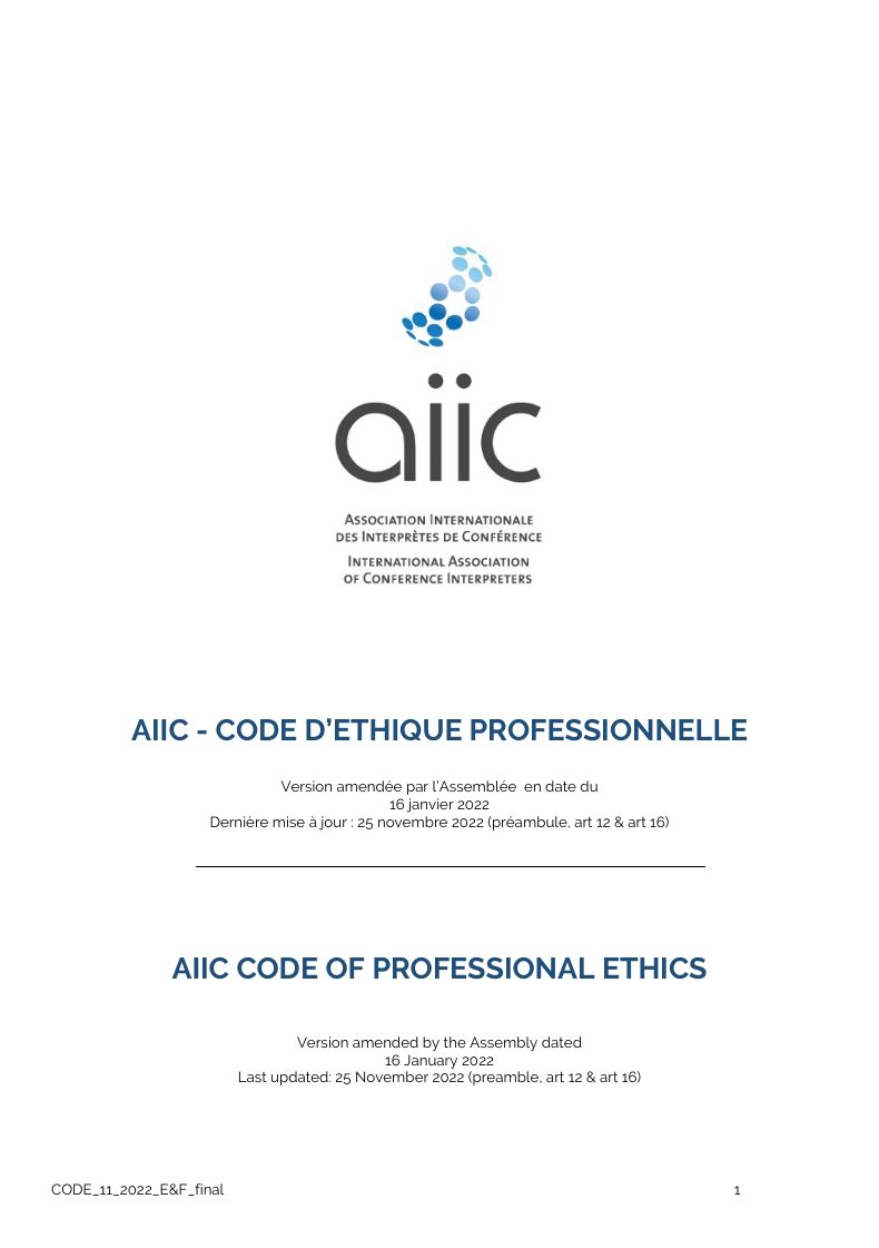 Membre de l’AIIC (Association Internationale des Interprètes de Conférence) et de la SFT (Société Française des Traducteurs), je porte un intérêt particulier à la collégialité et à la déontologie de notre profession.